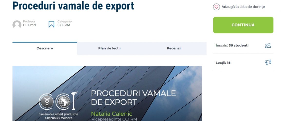 Platforma e-learning este o inițiativă a Camerei de Comerț și Industrie a Republicii Moldova, realizată cu suportul proiectului ”Dezvoltarea capacităților de export pe malurile Nistrului” (AdTrade), finanțat de Suedia și Marea Britanie și implementat de PNUD.
